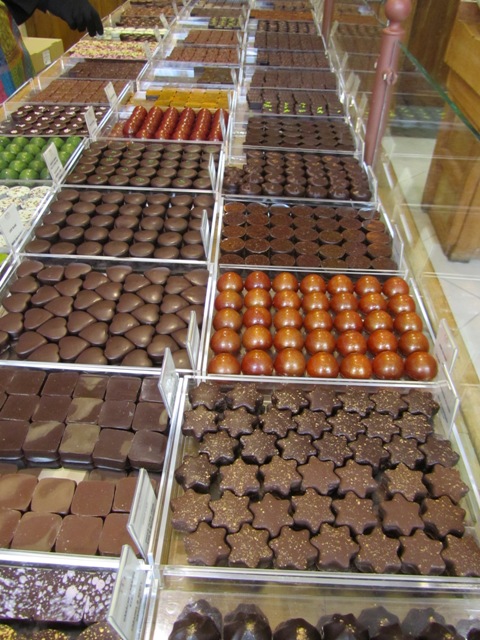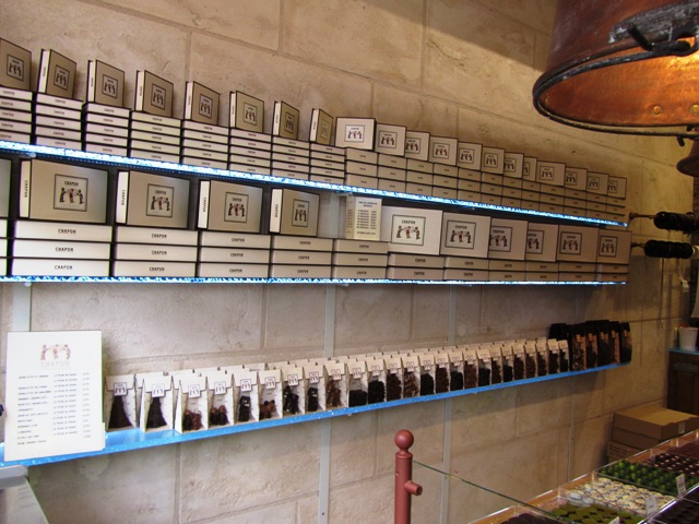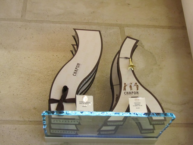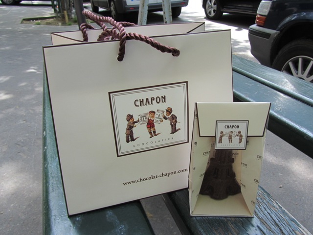 Je suis passée, j’ai admiré les rangées chocolatées, j’ai goûté une des spécialités de la maison (des dômes praliné au sel fumé qui ont valu plusieurs distinctions à Patrice Chapon). Puis j’ai cédé à la tentation… avec une Tour Eiffel au chocolat au lait. Un véritable délice…