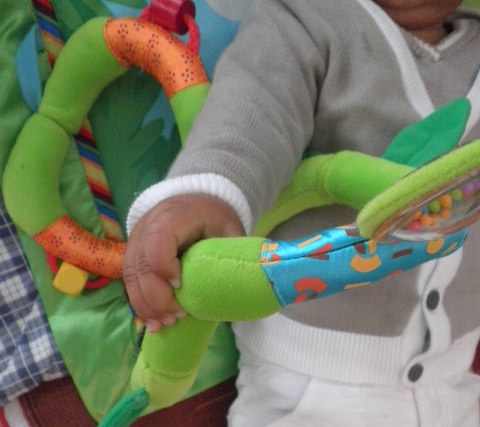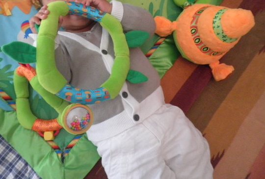 Jusqu’à présent je n’avais jamais acheté le moindre jouet à Petit Ange. Entre les cadeaux de naissance et les cadeaux de Noël, je ne jugeais pas nécessaire de dépenser plus. L’autre jour, en discutant avec ma maman (qui est aussi ma nounou cinq étoiles) nous avons remarqué que Petit Ange pouvait passer à des jouets plus évolutifs. Plus facile à dire qu’à trouver…
