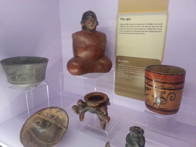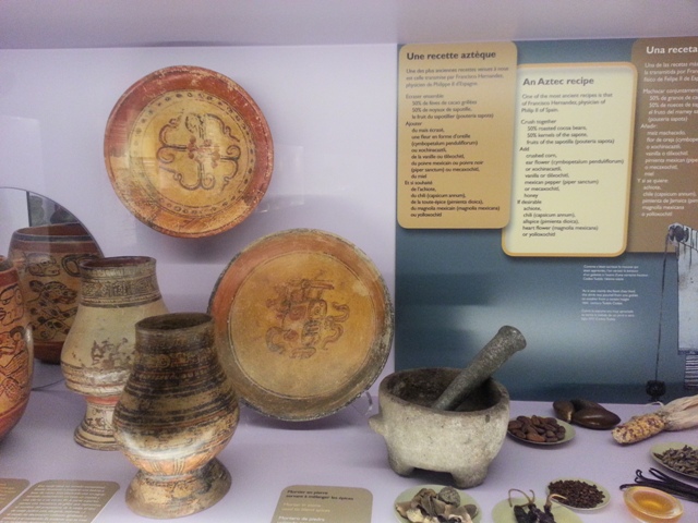 J’ai appris que 4000 ans plus tôt, le chocolat se consommait uniquement sous forme de boisson amère et épicée, dont seule la mousse était dégustée. D’origine divine, cette boisson était réservée à l’élite (prêtres, soldats, souverains…). Les fèves de cacao servaient notamment d’offrandes au dieu Quetzalcóatl, le serpent à plumes.
