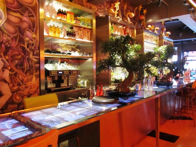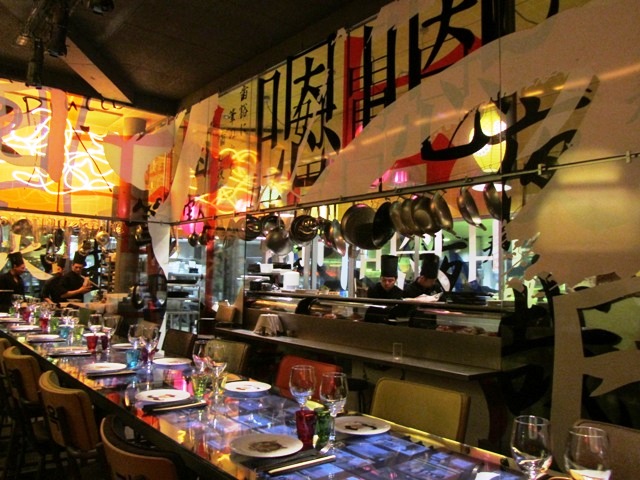 La déco est un peu trop chargée pour moi, même si j’aime bien ce que fait Starck. Et puis, les tables collées les unes aux autres, ça ne me tente pas trop… pourtant le bo bun revisité avec du foie gras, c’est quand même tentant ! 😉