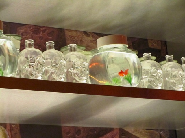 Puis l’ouïe est sollicitée. La musique est suffisamment passe-partout et de niveau sonore raisonnable, si bien que je n’en garde pas un souvenir marquant (dans un sens comme dans l’autre). Les platines des DJs, bien en vue dès l’entrée, laissent penser que l’ambiance peut devenir plus festive.