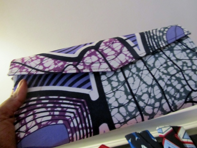 Outre les cosmétiques, vous avez sans doute remarqué le petit plus tendance : une pochette en wax réalisée par la styliste Vanessa Augris, qui propose des articles faits main avec des tissus d’inspiration africaine. Je suis très fan.