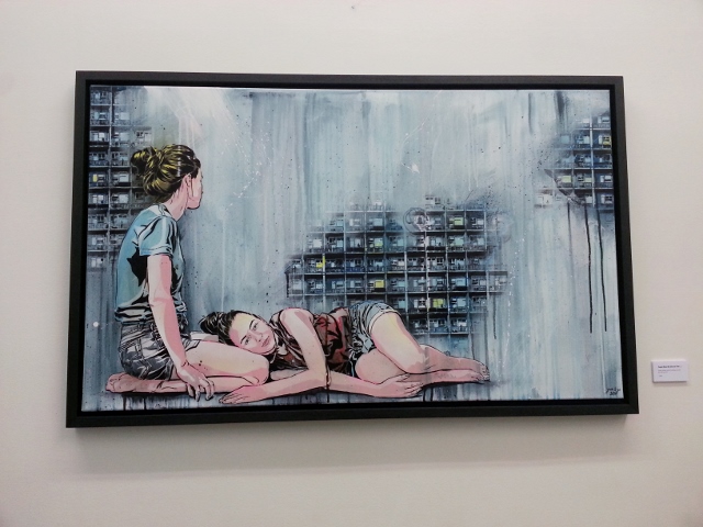 J’ai découvert ces artistes sur les murs de Paris (notamment dans les 5ème et 13ème arrondissements) et j’ai eu un gros coup de coup pour leur travail : leur représentation de la ville et son architecture, les fenêtres ouvertes sur diverses perspectives, et surtout leurs personnages de photographes qui semblent photographier les passants… qui parfois les prennent en photo, comme moi !