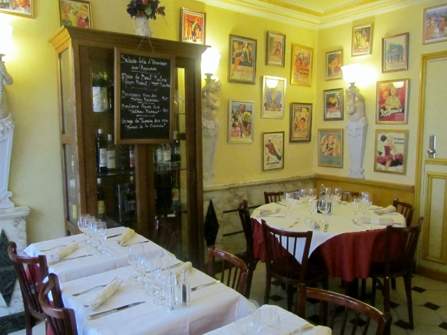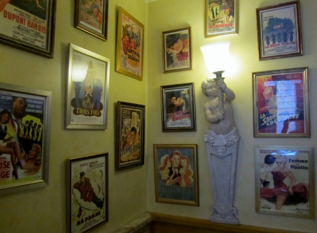 La façade laisse imaginer un lieu qui a conservé son authenticité. L’intérieur confirme ce sentiment, avec une décoration parisienne typique du siècle dernier. Entre les boiseries, les moulures, les velours et surtout la multitude d’affiches anciennes qui ornent les murs, on voyage dans le temps.