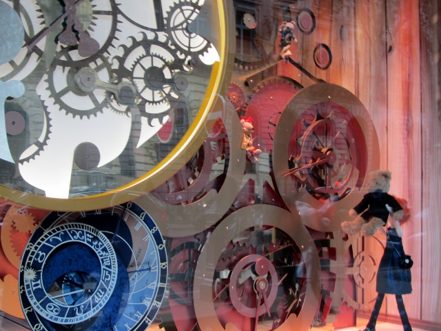 Boulevard Haussmann, sur le thème « Il était une fois Noël… avant les douze coups de minuit », les douze vitrines animées dévoilent des scènes féeriques racontant l’histoire de la poupée Lilly et de l’ours Martin qui reçoivent une mystérieuse invitation… De vitrine en vitrine, les deux amis intrépides parcourent un chemin semé de découvertes où des rencontres surprenantes les attendent.