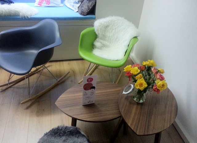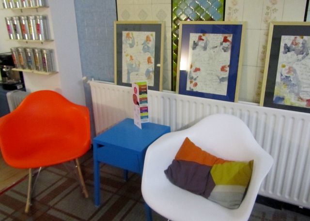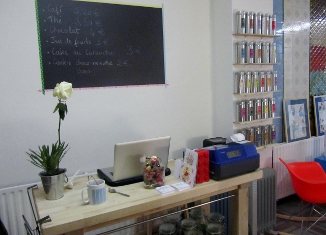A quoi ça ressemble ? Un salon de thé cosy comme je les aime, c’est à dire avec une décoration et une ambiance musicale que je pourrais avoir chez moi! Fauteuils Eames, livres exposés un peu partout, boîtes de thé, espace coloré… Je le répète : je pourrais y habiter !