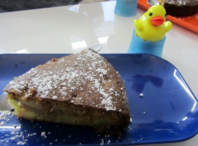 Qu’est-ce qu’on mange ? A la carte ce jour-là, un cake au Carambar et un gâteau pommes-cannelle… Les deux sortaient du four et étaient délicieux (je n’ai mangé qu’une part de gâteau aux pommes, j’ai goûté une cuillère du second). Les gâteaux sont faits maison et sous vos yeux, c’est authentique !