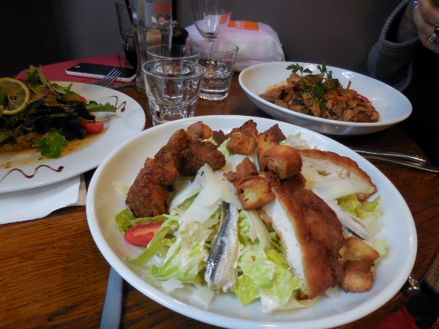 Qu’est-ce qu’on mange ? La carte propose trois formules à des prix imbattables dans ce quartier. En entrée, je conseille, les Croquettes de Sainte maure de Touraine panées en salade, la fricassée de champignons persillée ou la soupe du jour (surtout si c’est la soupe aux champignons…).