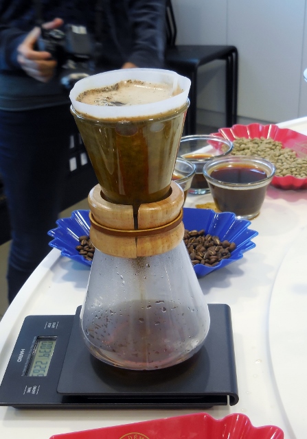 Une fois notre palais ainsi exercé, nos instructeurs nous ont proposé de goûter un même café, infusé de différentes façons. Chemex, cafetière à dépression ou cafetière à pression : nous avons obtenu un goût différent avec chaque méthode.