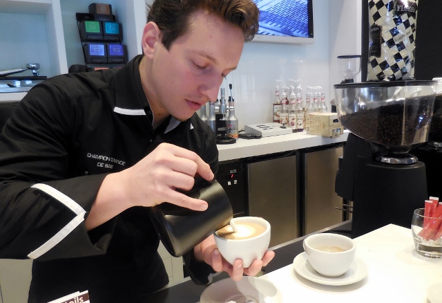 Pour nous souhaiter la bienvenue au paradis du café, Anthony Calvez a sorti le grand jeu, en nous préparant de petites douceurs. Pour moi, un latte machiatto aromatisé de crème brûlée aussi bon que beau. Nous avons apprécié la créativité et la dextérité du maître barista, qui décore ses créations de cœurs, mais aussi de chat ou de chouette.