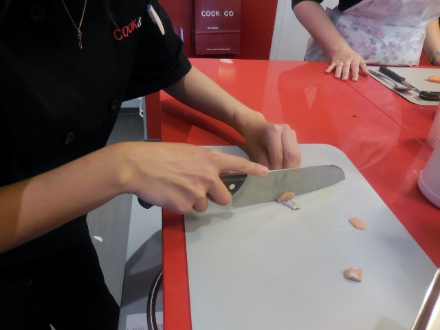 Quand j’ai retrouvé mes copines blogueuses chez Cook & Go Paris 11 Roquette, l’ambiance était résolument conviviale. Nous avons confectionné des Bonbons de saumon au basilic et pignons de pin, et des Cake pop chocolat au coeur de framboise.