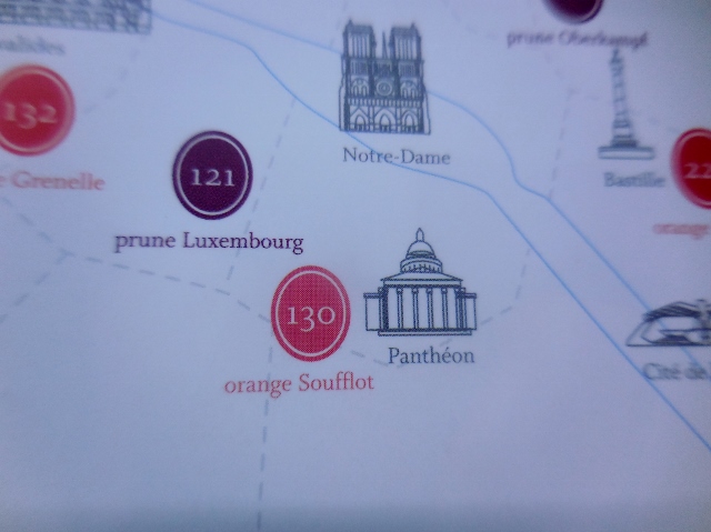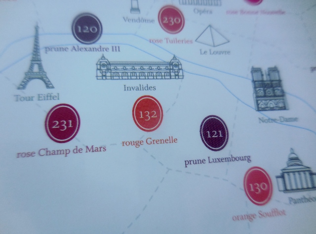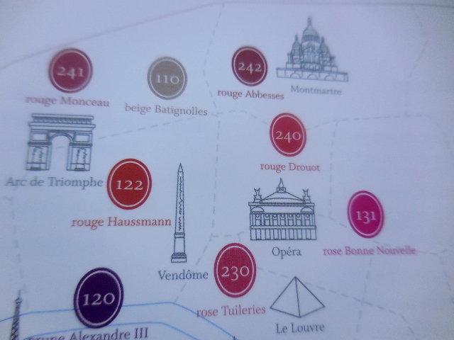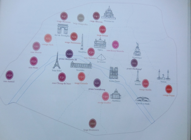 Je me suis amusée à associer les couleurs à des lieux emblématiques de mon histoire : une adolescence en rouge Grenelle, des études orange Soufflot, le shopping en rouge Haussmann, du rose Champ de Mars pour le romantisme et du rouge Abbesses pour le quartier de mon coeur…