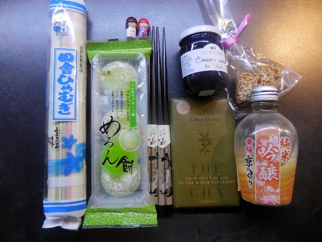 Les filles m’ont gracieusement offert la box du mois d’avril, dont j’ai apprécié toutes les petites et grandes attentions. Intitulée Sakura (cerisier en japonais), son contenu est inspiré du festival du Hanami (regarder les fleurs), au cours duquel la population se rassemble pour boire et manger sous les sakura. J’ai commencé par dévorer le chocolat au thé Vert Matcha de Café tasse, puis les pâtisseries au melon… Je n’ai pas encore préparé les nouilles, ni attaqué le saké… Mais cela ne saurait tarder.
