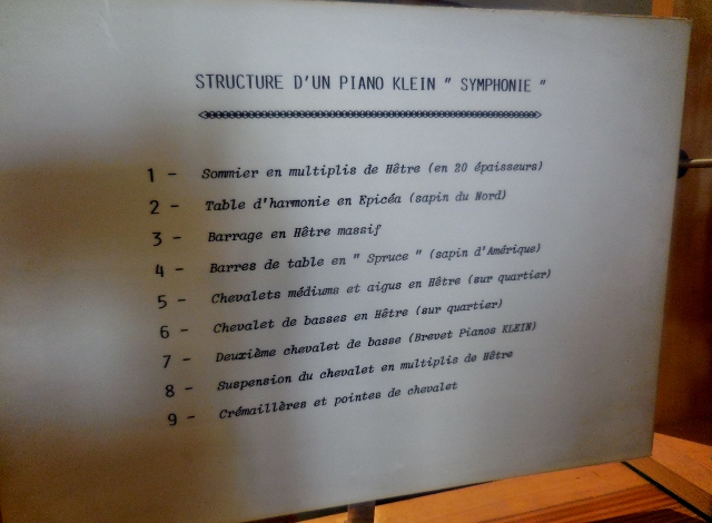 Quand on sait que la fabrication d’un seul piano requiert plus d’une centaine d’heures de travail (les Pianos Klein en réalisent 50 à 70 par an), on ne peut qu’être admiratif et respecter un tel savoir-faire. Mon amour du piano n’en est que plus fort, et je chéris d’autant plus le mien.