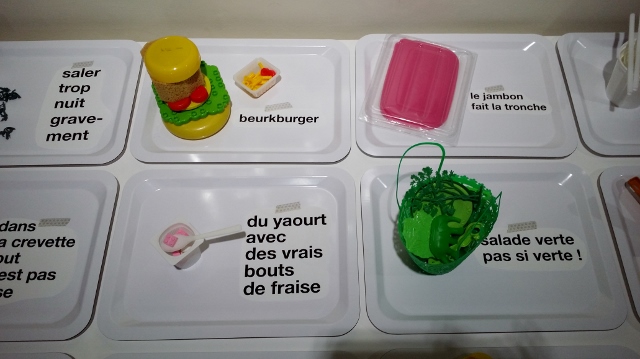 Je comprend. Quand j’ai commencé la visite, j’ai trouvé l’ensemble très étrange. Et puis c’est en observant avec attention les détails que j’ai trouvé de l’intérêt à cette exposition. Il faut vraiment garder en tête le fil conducteur, à savoir la relation de notre société avec la nourriture.