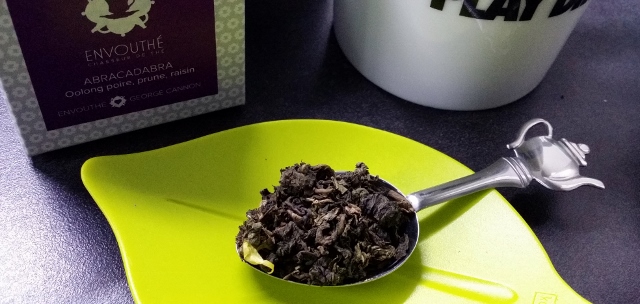 Le “chasseur de thé” n’a pas vocation à se lancer dans la création de thé, mais souhaitais marquer son second anniversaire de la manière la plus pertinente avec son univers. Envouthé a donc fait appel aux établissements George Cannon (maison parisienne experte dans la création et le commerce du thé en vrac depuis six générations), pour concevoir Abracadabra. Ce thé Oolong de Chine est lui aussi fuité : poire, raisin, prune, pêche et morceaux de raisins. Des fruits d’automne dont je vous laisse imaginer les saveurs qui se dégagent à chaque gorgée…