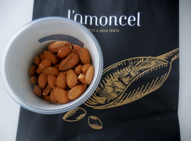 Comme j’étais entrée pour des amandes, je suis ressortie avec des amandes… Délicieuses ! J’aurais pu finir le pot en quelques minutes si je ne me rendais pas à un déjeuner dans la foulée. A présent, voilà que j’ai envie d’y retourner pour tout goûter (en particulier les morceaux de chocolat et le thé). Je conserve précieusement l’adresse et surtout, je partage le bon plan.