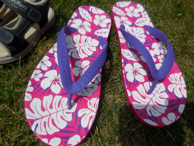 Chapeau de paille vs casquette de Baseball NY ; lunettes Tom Ford vs Mask Kid 306° Béaba (très pratiques les branches flexibles et la monture enveloppante qui ne se pose pas sur les oreilles) ; Sandales Kickers vs tongs Crocs ; crème Nivea sun kids vs Eucerin Oil Control Sun Gel-Crème.