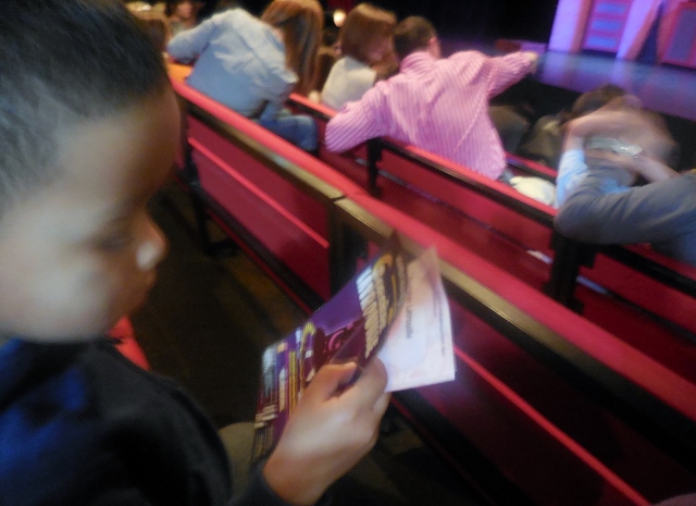 Avant d’entrer dans le théâtre, Mon Lutin fanfaronnait en me demandant sans arrêt où était Sorcière Latrouille. De même lorsque nous avons pénétré dans la salle. Il ne cessait de me questionner pour savoir si le décor était sa maison, ou encore si elle se cachait sous le lit… Et puis quand la lumière s’est éteinte, il a sauté sur mes genoux… Pour quelques minutes seulement, car il a bien vite compris qu’il n’avait rien à craindre de Sorcière Latrouille.