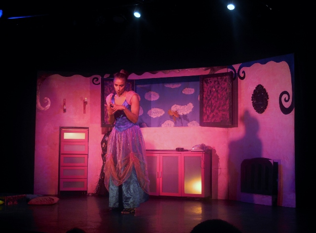 En effet, en quelques répliques, Frédérique Bassez (l’interprète de Sorcière Latrouille) parvient à mettre les enfants dans sa poche : ils se moquent d’elle, de ses peurs qui sont parfois les leurs, voire les miennes (je pense aux araignées). Son jeu est moderne, son ton entraînant et elle s’adresse directement aux petits spectateurs. Elle les prend à témoin.