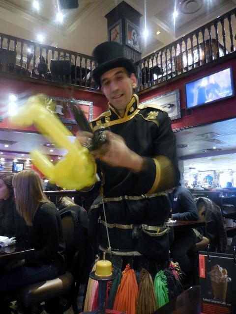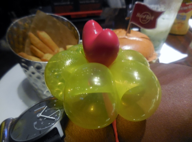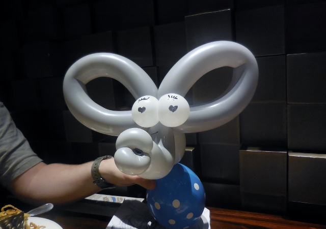 Le clou du déjeuner a sans aucun doute été le passage du sculpteur de ballons. Ce monsieur fort sympathique a offert une de ses créations à chaque membre de la famille. D’un dimanche à l’autre, l’animation varie (maquillage ou tour de magie sont également au programme). Je n’ai pas pensé à demander si on peut se renseigner à l’avance sur le programme.