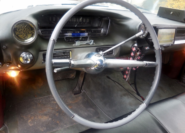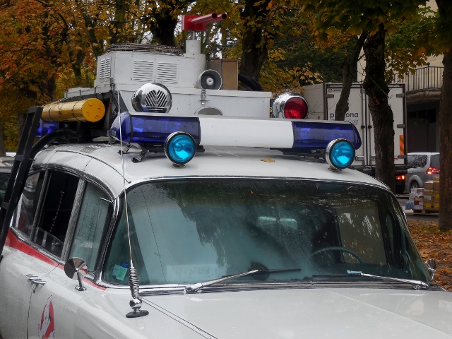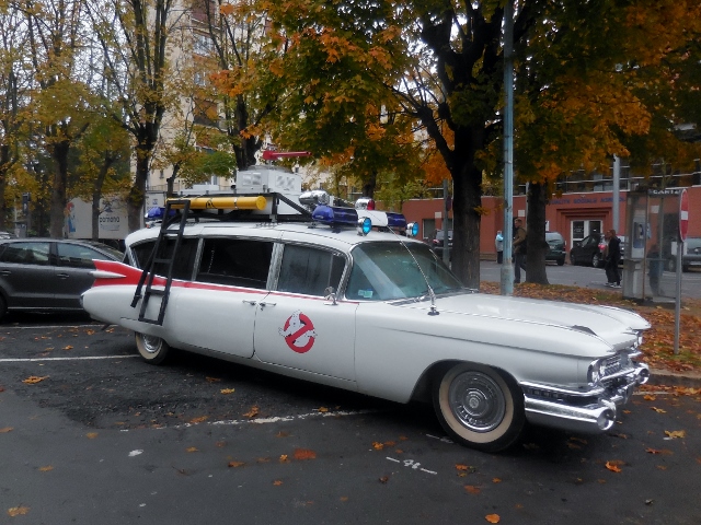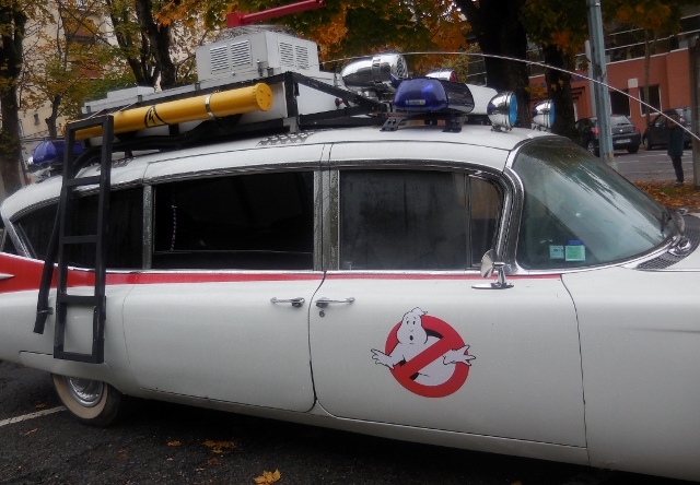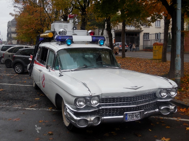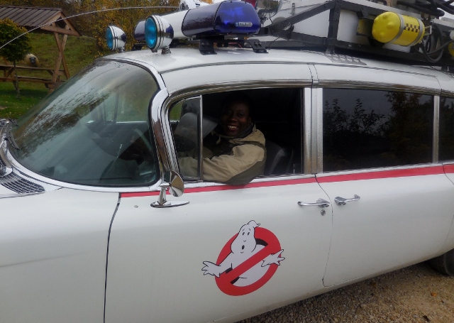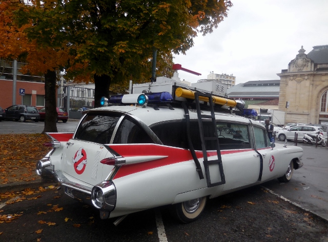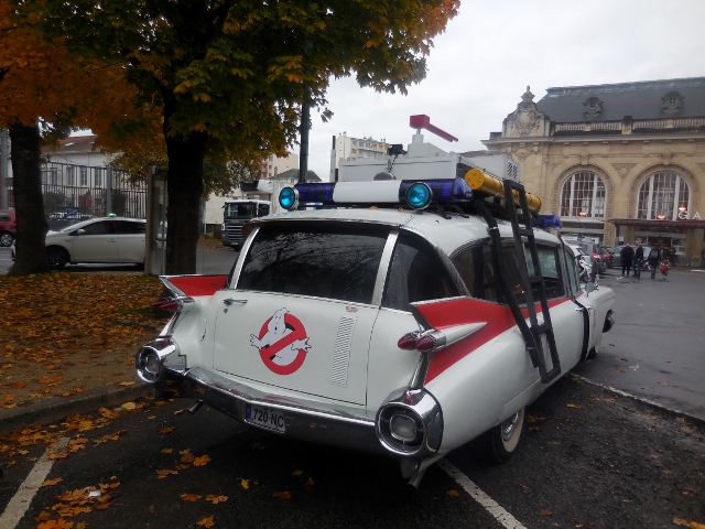 A notre arrivée en Gare de Troyes, nous sommes montées dans une voiture qui attirait tous les regards… L’Ecto 1, star du film SOS Fantômes. Cette Cadillac est un ancien corbillard, retapé et customisé par un passionné.