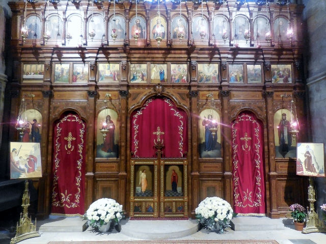 Deux ans plus tard, le célèbre ébéniste de Damas, M. Georges Bittar, mort en odeur de sainteté fit l’iconostase ou marqueterie mosaïque que l’on voit toujours dans l’église, et vint à Paris l’installer de ses propres mains.