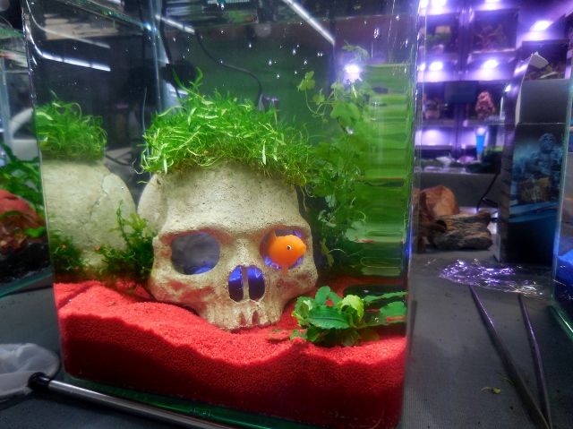 Si vous cohabitez avec des poissons, deux solutions pour customiser leur résidence : composer un aquarium sur le même principe que le jardin d’eau (sable, plantes, pierres, objets de déco), ou bien le personnaliser en vous adonnant à la peinture sur verre.