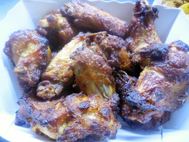 Les chicken wings (rôties et non frites) sont recouvertes d’un mélange de jus de poulet et d’épices (dont du paprika). Les garçons ont dévoré leur part sans dire un mot.
