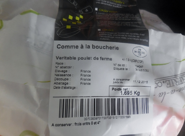 Bref, j’ai donc reçu un poulet provenant de la ferme de Luteau (une petite exploitation située dans la Beauce). Appréciez un peu la belle bête…