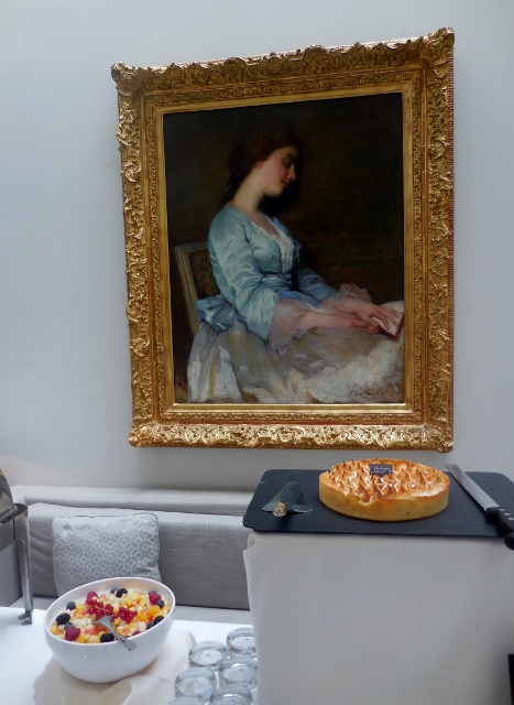 Comme je l’avais noté lors de ma première visite, la décoration de l’Hôtel de Sers allie modernité et histoire. Si elle est résolument moderne (fauteuils, desk en marbre blanc à la réception, espace lounge, bar, restaurant), on note que l’esprit des lieux a été conservé : la grande galerie et ses portraits de personnages historiques, l’escalier monumental (devant lequel nous nous sommes photographiés), etc.