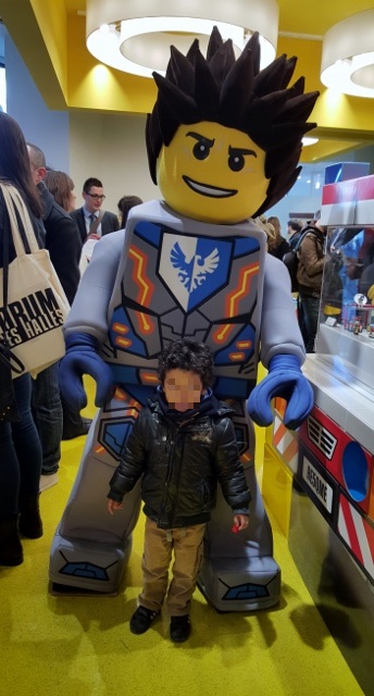 Hier soir, Mon Lutin et moi avons assisté à l’inauguration du premier Lego Store parisien. Situé en dessous de La Canopée, cette boutique est désormais ouverte du lundi au dimanche. J’exagère un peu quand je dis que nous avons assisté aux festivités : en raison des mesures de sécurité, nous étions à l’extérieur de La Canopée au moment où le ruban a été coupé. Nous observions donc la scène de loin. Toujours est-il que nous nous trouvions parmi les premiers clients. Mon fils a ainsi posé avec ses Lego préférés (dont un Nexo Knights).