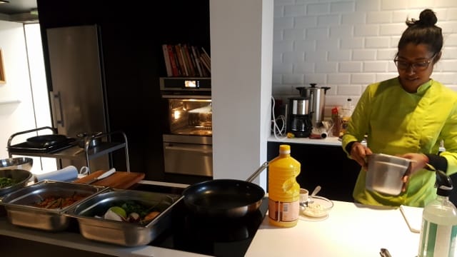 C’est là que Najaah Ibrahim, chef et fondatrice du traiteur Le Comptoir Mauricien, nous a reçus. Elle nous a appris à réaliser des samousas et des desserts à base de pommes.
