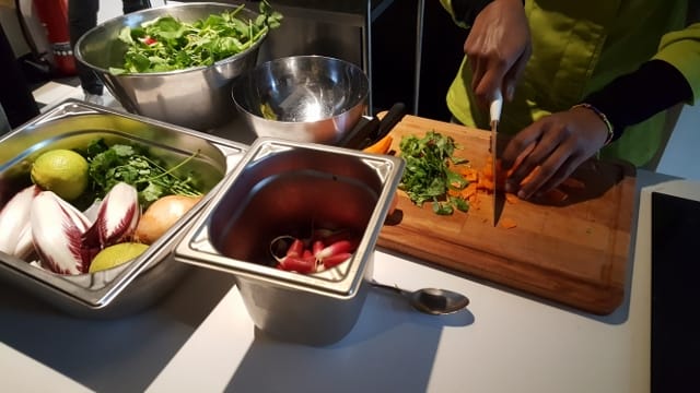 Foodentropie est un espace de restauration et d’événementiel, dédié au bien manger pour tous. Situé au cœur du Château de Nanterre, le lieu se définit comme un “laboratoire de l’alimentation durable et positive”. Avant même de commencer notre atelier culinaire, j’ai eu un un gros coup de coeur pour l’endroit. L’espace de restauration (qui propose une cuisine de saison, responsable et abordable) est design et épuré.