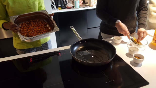 Non seulement elle s’est montrée très pédagogue et très patiente avec nous. Mais en plus, elle nous a fait préparer une entrée et un dessert simples et délicieux.