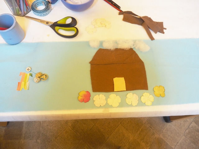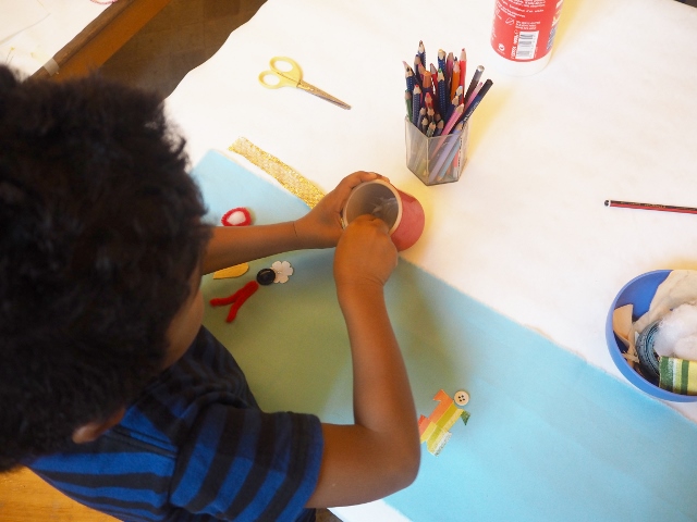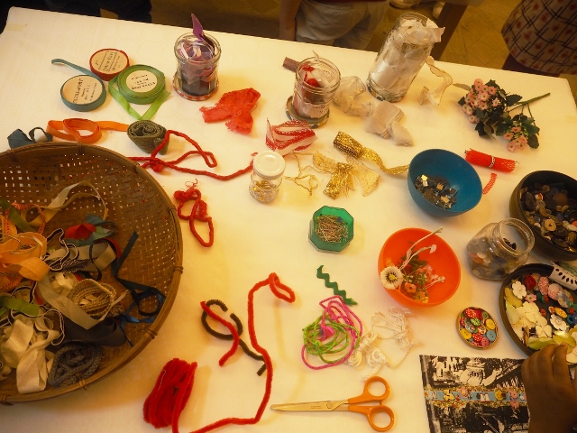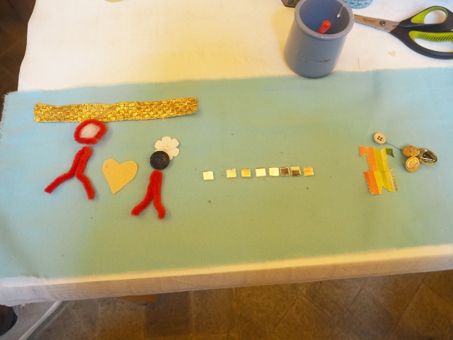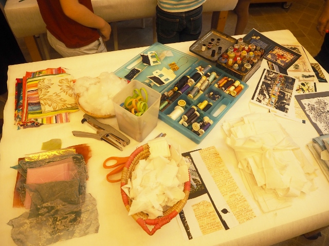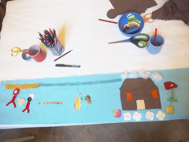 Après la visite du musée, nous sommes retournés pour la dernière partie de cet atelier pour enfants. Chaque enfant devait à présent broder une histoire sur un morceau de tissus.
